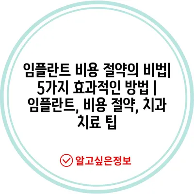 임플란트 비용 절약의 비법| 5가지 효과적인 방법 | 임플란트, 비용 절약, 치과 치료 팁