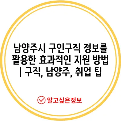 남양주시 구인구직 정보를 활용한 효과적인 지원 방법 | 구직, 남양주, 취업 팁